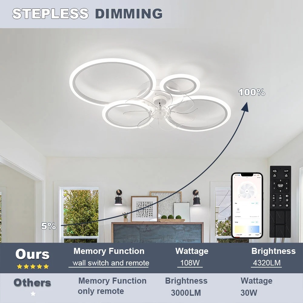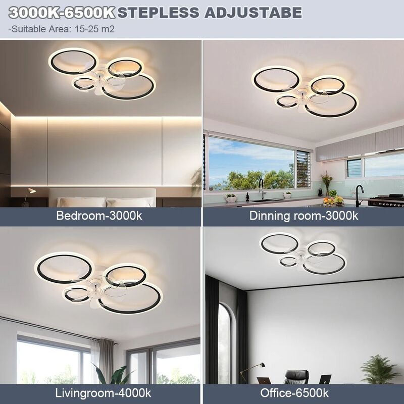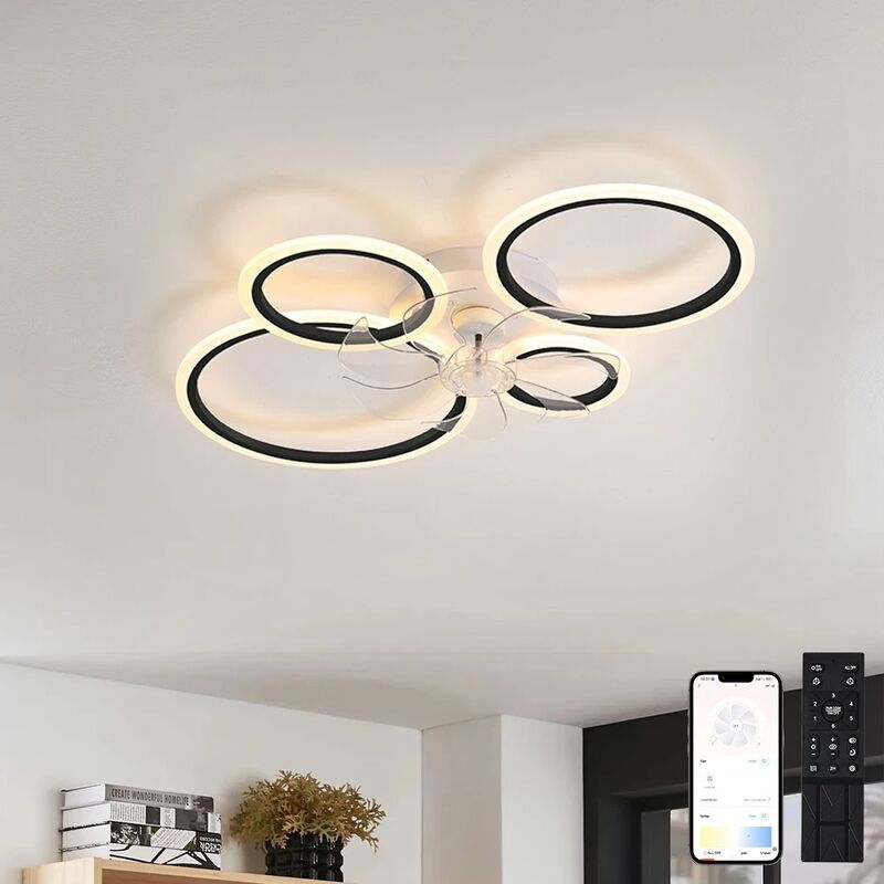 Lámparas de cocina de dormitorio Negro Blanco lámpara de anillo múltiple samrt Led Bajo Ruido Linterna de ventilador de techo (WH-CLL-53)