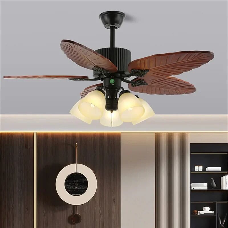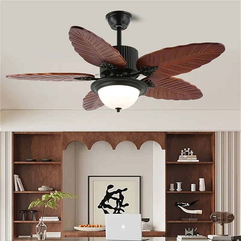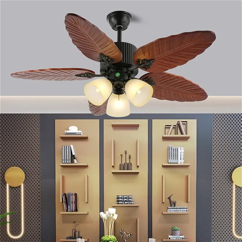 American Retro Salón Restaurante Ventilador de techo Luz Ventilador eléctrico de control remoto Luz Ventilador de hoja de plátano Lámpara WH-CLL-58