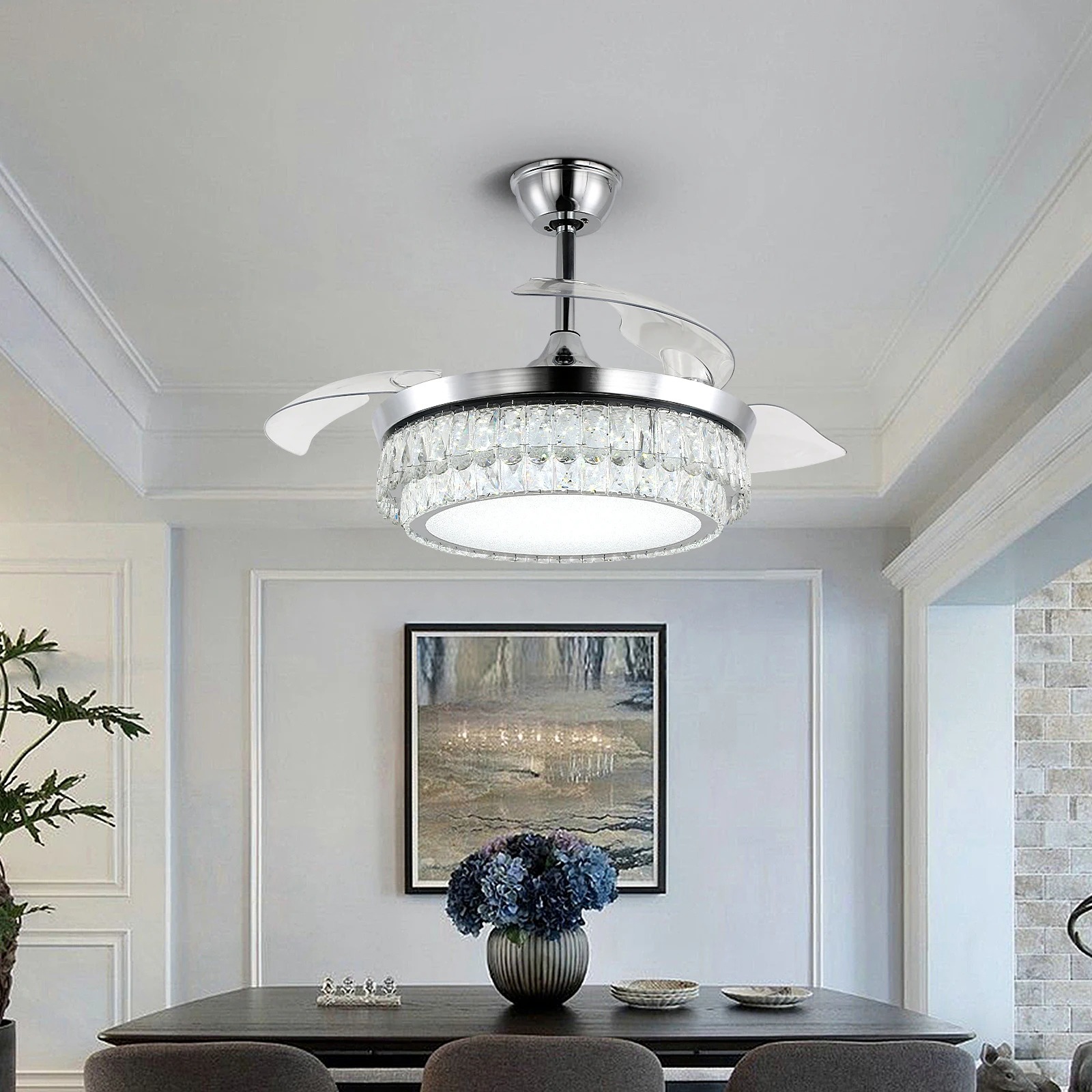 Lámpara de ventilador de luz led retráctil, lámpara de cristal con lámpara de cristal invisible, lámpara de ventilador de tiempo apagable (WH-CLL-61)
