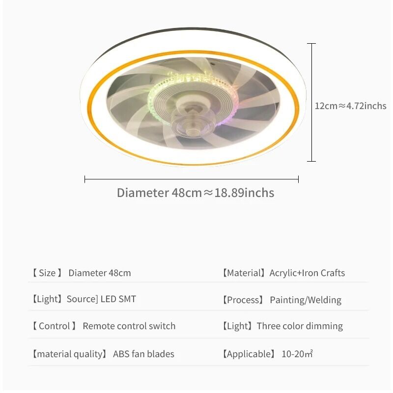 Oscurecimiento interior dormitorio sala de estar comedor moderno delgado RGB control remoto LED ventilador de techo luz ((WH-CLL-62)