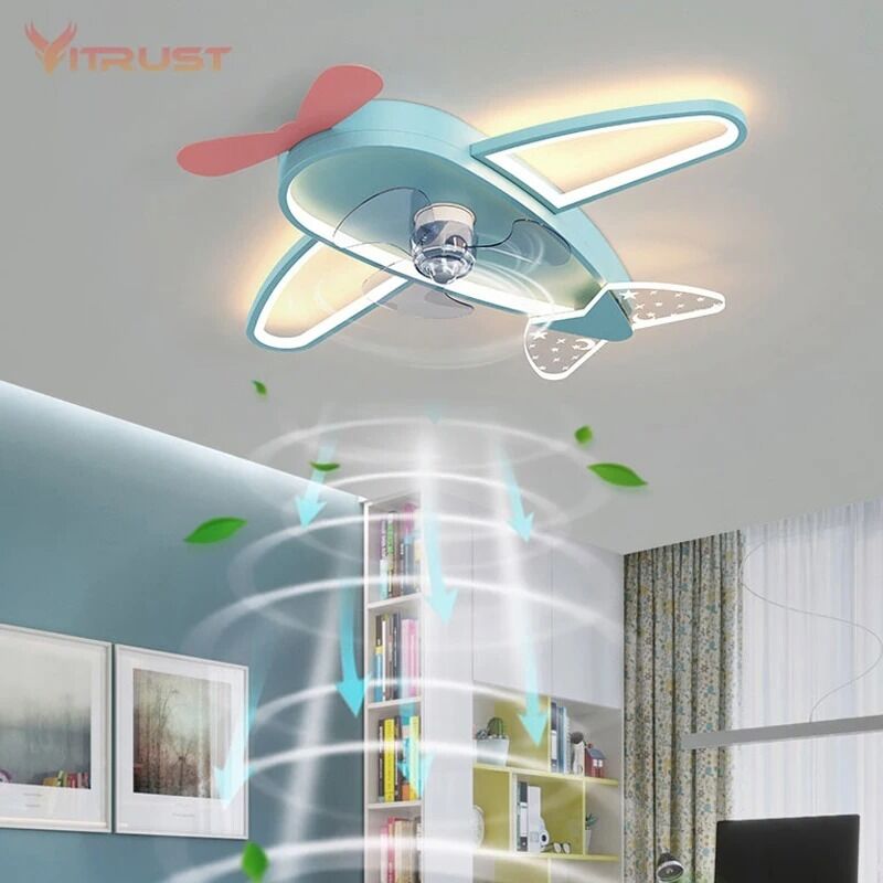 Niños Habitación de niños Ventiladores de techo LED Control remoto atenuable creativo (WH-CLL-64)