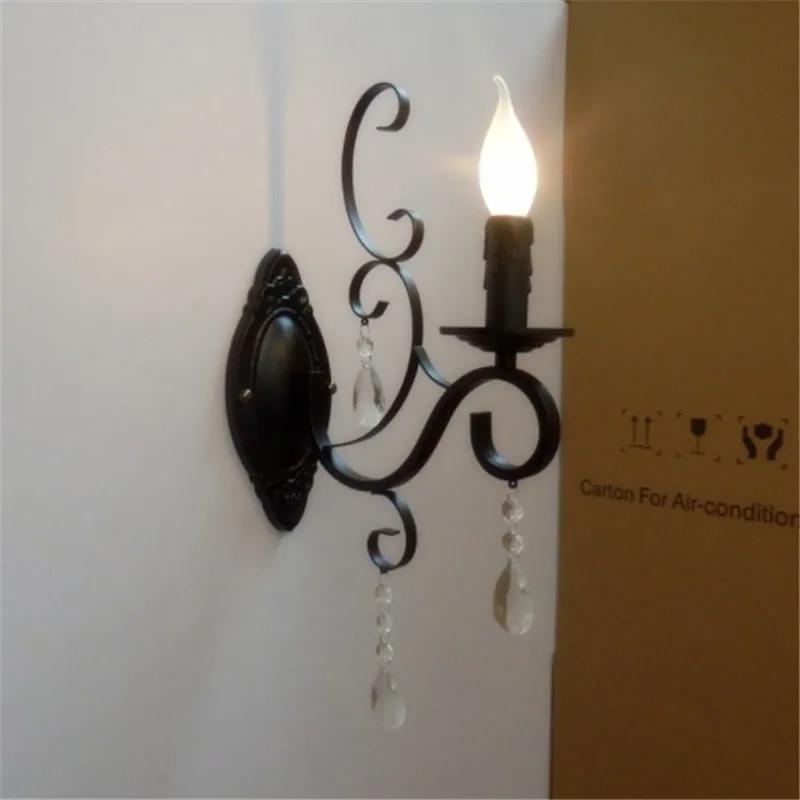 European classic black wrought iron crystal deco candle wall light(WH-VR-122)