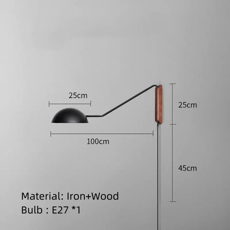 Lámpara de salón de estudio de lectura para dormitorio, luz de pared de brazo largo, Metal dorado y negro con enchufe (WH-VR-149)