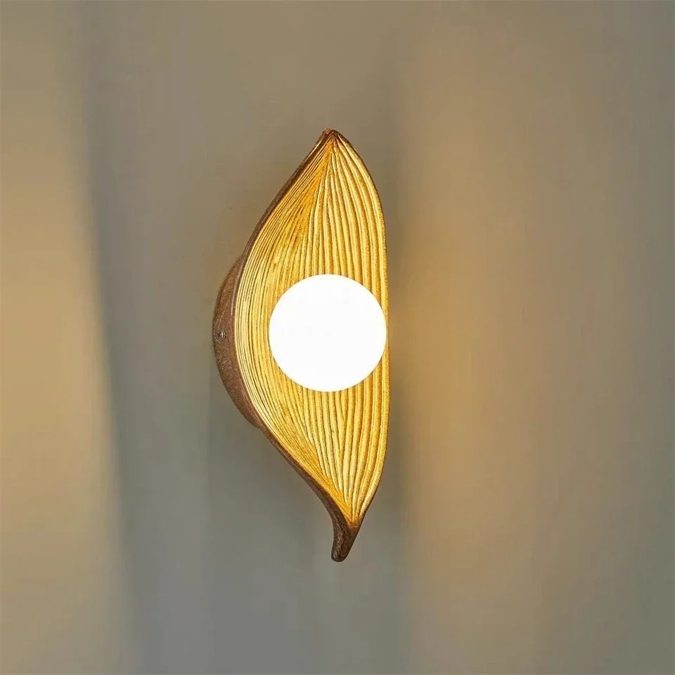 Retro Homestay Corridor Background Wall Lamp Bedroom Bedside resin Leaf Wall Lamp(WH-VR-162)