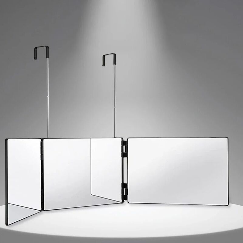 Espejo de 360 grados con LED Espejo de 3 vías Corte automático del cabello 3 lados Maquillaje plegable Espejo con luz ((WH-MR-86)