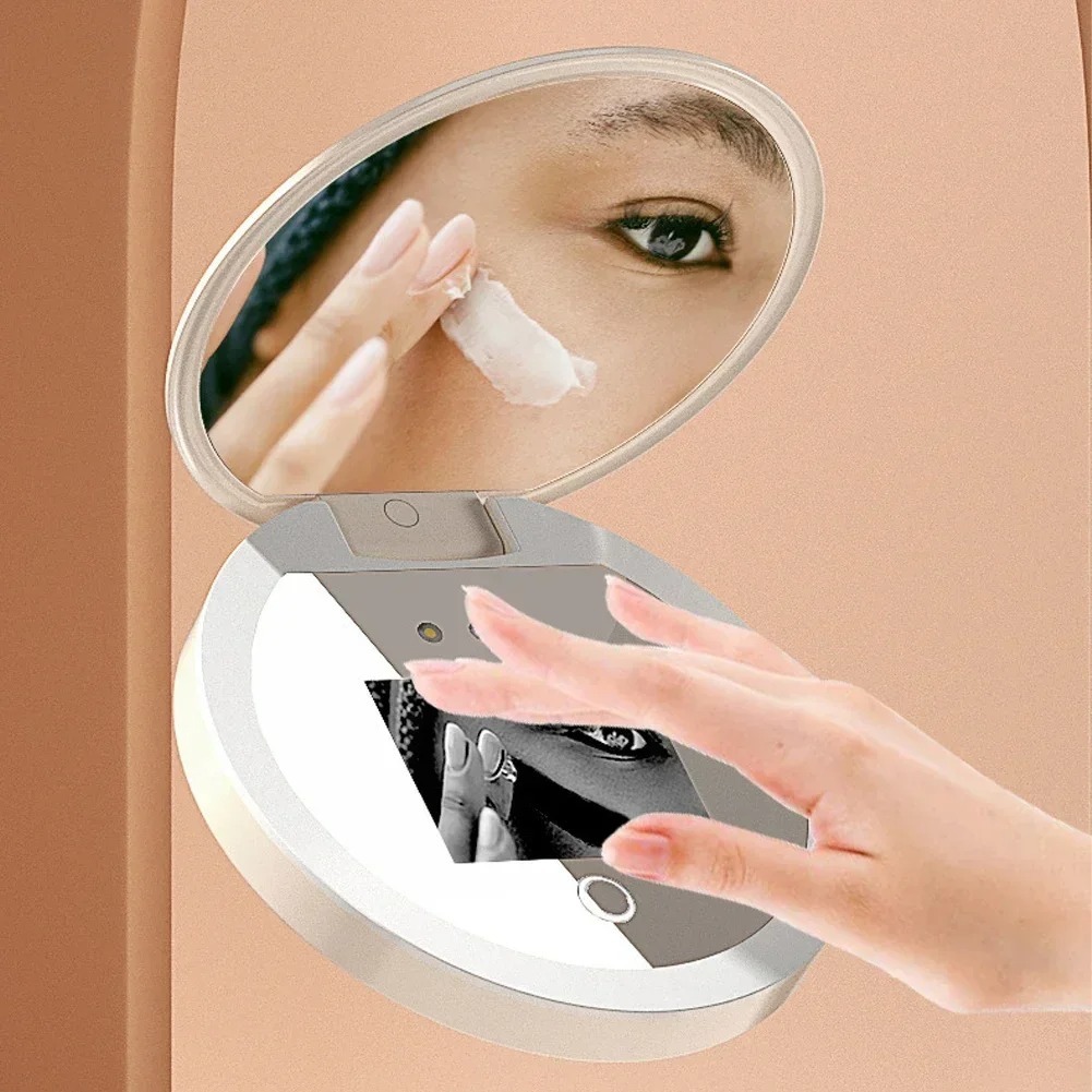 Cámara de prueba de protector solar 2X Magnificación Maquillaje de viaje Espejo UV con luz ((WH-MR-89)