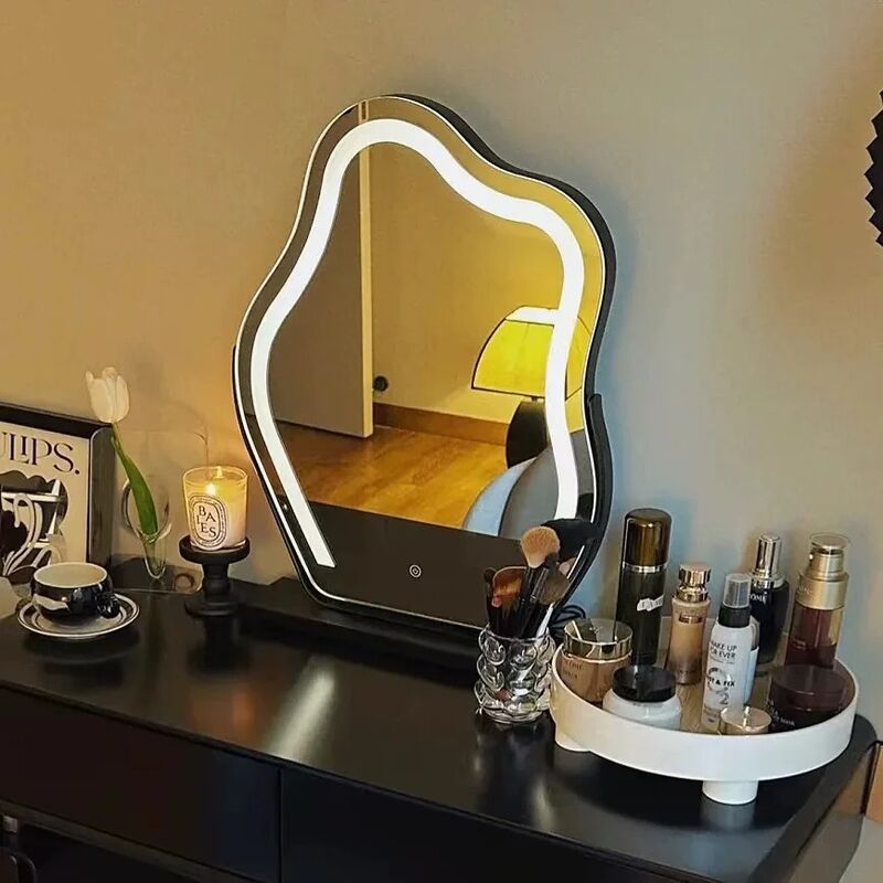 Control de pantalla táctil LED con 3 modos de atenuación Blanco 360 grados de rotación de maquillaje Espejo de nube con luces (WH-MR-96)