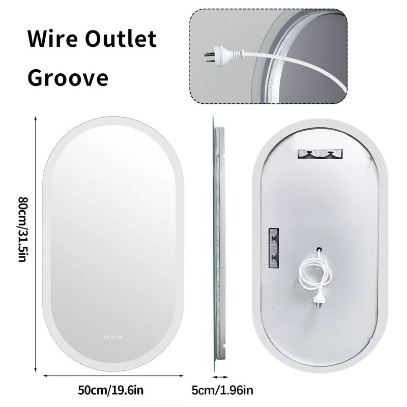 Espejo oval de pared grande con lámpara (WH-MR-102)