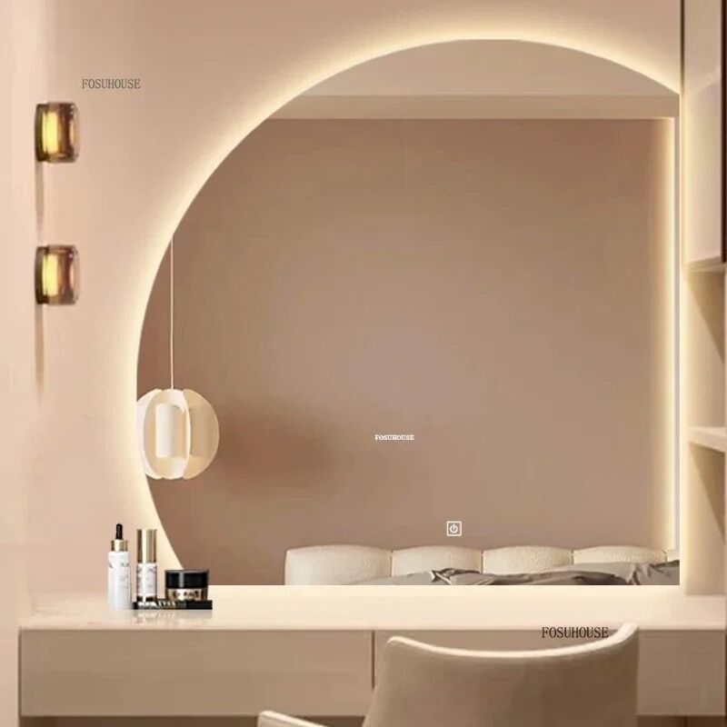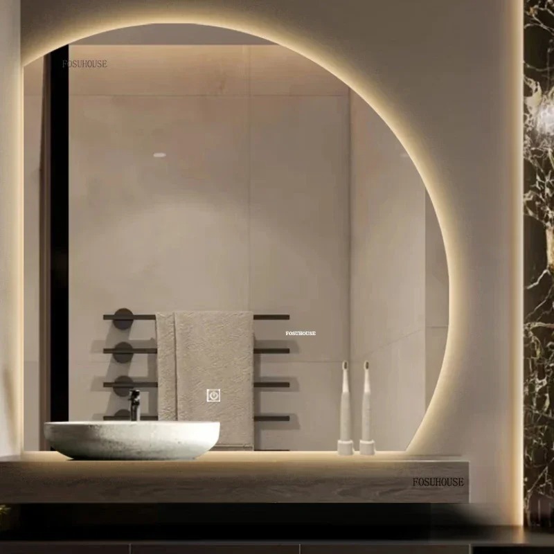 Espejos de baño nordicos semicirculares Espejos inteligentes de pared con lámpara ((WH-MR-103)
