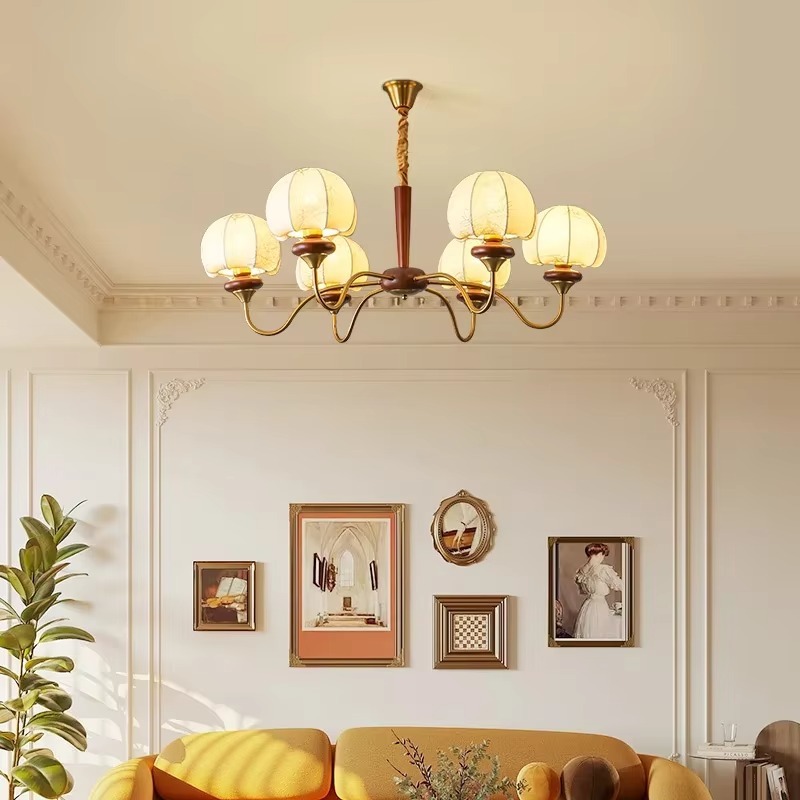 Romántica lámpara de araña vintage de madera maciza y tela de estilo americano para dormitorio (WH-VP-298)