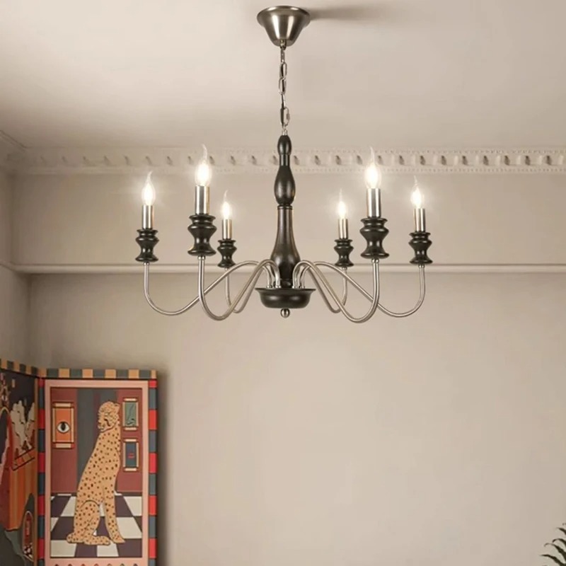Bedroom Foyer Dining Room Lighting Fixtures French Retro Style Iron Wood LED Decor Home Chandelier (WH-VP-324)